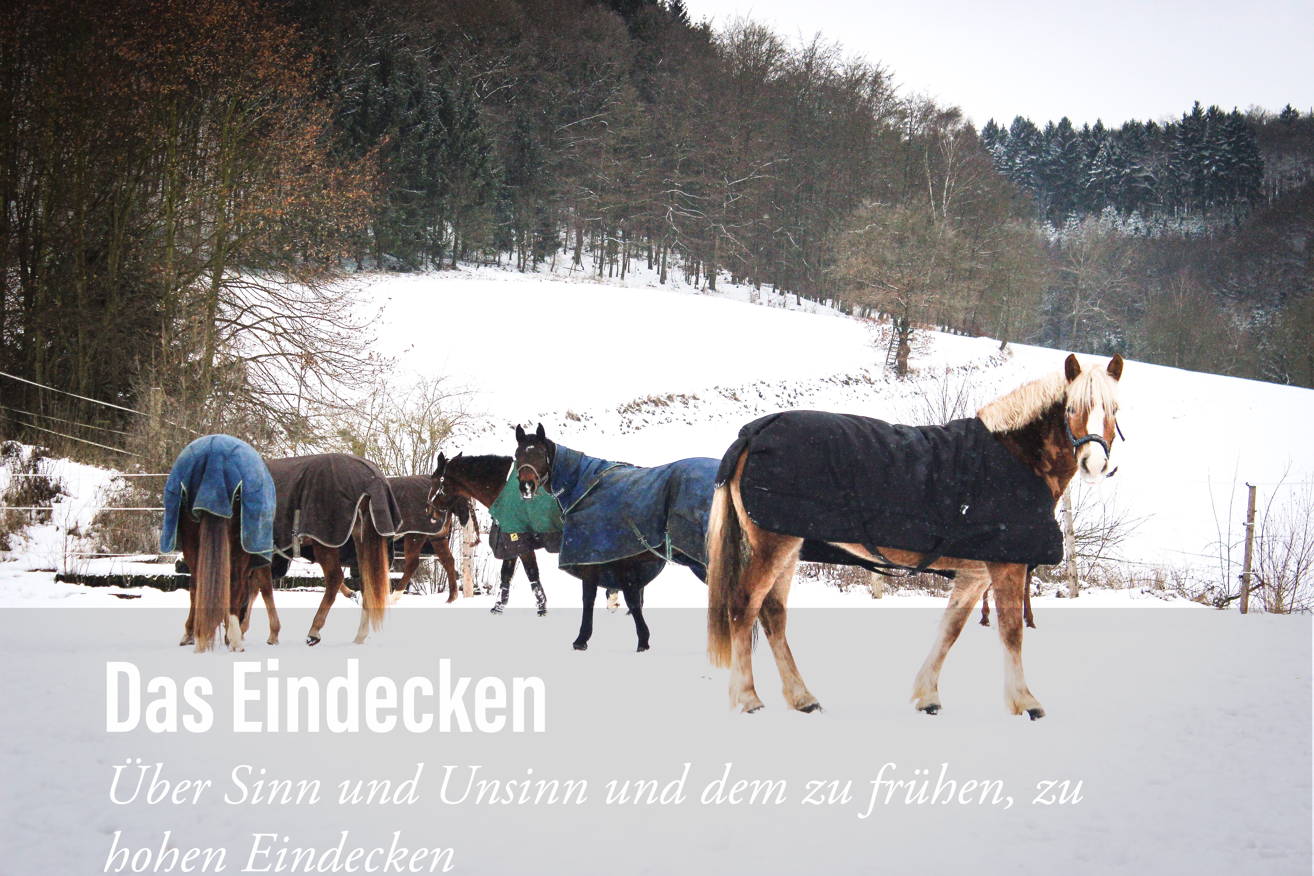Unsere Pferde sind nicht aus Zucker und in keinem Fall mit unserem Empfinden, was Wärme und Kälte betrifft zu vergleichen. Unnötiges, zu hohes Eindecken schadet unseren Pferden mehr, als das sie einen Nutzen davon hätten, deswegen bitte ich euch innigst einmal zu überlegenen.