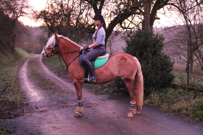 Krasses Bild, oder? Als wir aus der Halle kamen, war einfach alles in ein lila Licht getaucht, das habe ich schon lange nicht mehr so gesehen 🌟. Apropos Halle, ja da war ja was, Springstunde 🙈. Kurz und bündig, warum soll ich es schön reden, es war nicht unser Tag, so super es das letzte Mal lief, so chaotisch war es heute. 🐣 Ich war schon mal super gestimmt, als ich bemerkte, dass Esi mal wieder rossig ist, also echt, das gibt’s doch nicht 🙄. Demnach war sie auch drauf und klebte in der Halle natürlich an beiden Wallachen, sodass deren Reiterinnen etwas Panik bekamen, als Inga ihren Pferden den Allerwertesten hinstreckte. „keine Angst, die tritt nicht, die will nur b*mbsen“ 👌🏽😅 Ich habe im Schritt eigentlich auch schon gemerkt, dass was nicht stimmte, sie wirkte Klamm und es fühlte sich wieder an, als müsse sie Pipi, dabei rosste sie oft 🙄. Die ersten Sprünge waren noch in Ordnung, die ritt ich auch von rechts an. Dann ging es an unsere erste Kombination und dann natürlich von links, irgendwie unglücklich gewesen. Solange da nur zwei Kreuze standen, ging das noch, als dann aus dem einen Steil wurde, wendete sich das Blatt. Ich kann gar nicht sagen, wie es passiert ist, weil es so schnell ging, ist über den blauen Steil sind wir noch mit Achen und Krachen drüber und bei dem gelben Kreuz war dann die Luft raus, ich weiß nicht wieso, sie hat gebremst, sich voll gedreht und hat dann noch fast das Shetty aus der Bahn geworfen, mein Pferd verabschiedete sich nach rechts und der Sattel dachte sich wohl „bei dem Spiel mach ich mit“, ich hing dann dementsprechend auf halb acht, während Marcel brüllte „Sitzenbleiben, sitzenbleiben“ lag ich schon im Sand, das ging alles so schnell, dass ich das nicht schalten konnte. Aber haha, Scherzkeks, wo will ich sitzen, wenn der Sattel auf der einen und ich auf der anderen Seite hänge 😅. Naja, aufgestiegen und weiter, in uns beiden war dann eine merkliche Unsicherheit und beim zweiten versucht, ging sie wieder über den steil und parkte am Kreuz, hatte zuvor aber schon viel zu früh den Steil angepeilt, sodass wir den auch noch gleich mitnahmen, die Stangen zwischen Ingas Beinen hingen und wir dann beide fast im Kreuz lagen, Fast aber nur 😅. Denn sie sprang wieder hoch und ich stand auf dem Sprung, ja stand, das muss man erstmal hinbekommen. Passiert ist nichts, lustig war es aber alle Male. Ich sprang dann den einzelnen Steil und die Kombi nochmal, das klappte dann zwar mit etwas hadern aber wieder und somit war es gut für heute. Der Wurm war einfach drin, so ist das eben manchmal, mal gucken, nächste Woche ist nochmal eine Stunde geplant, hoffentlich kommt da das gute Gefühl von letzter Woche wieder. Es kann nun mal nicht immer Rundläufen, gerade in der Arbeit mit einem jungen Pferd. Schwamm drüber 💕!